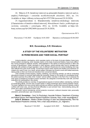 Статья: ИССЛЕДОВАНИЕ МОТИВАЦИИ ВОЛОНТЕРОВ ПЕРМСКОГО КРАЯ И ПОРТРЕТ ИХ ЛИЧНОСТИ (2025)