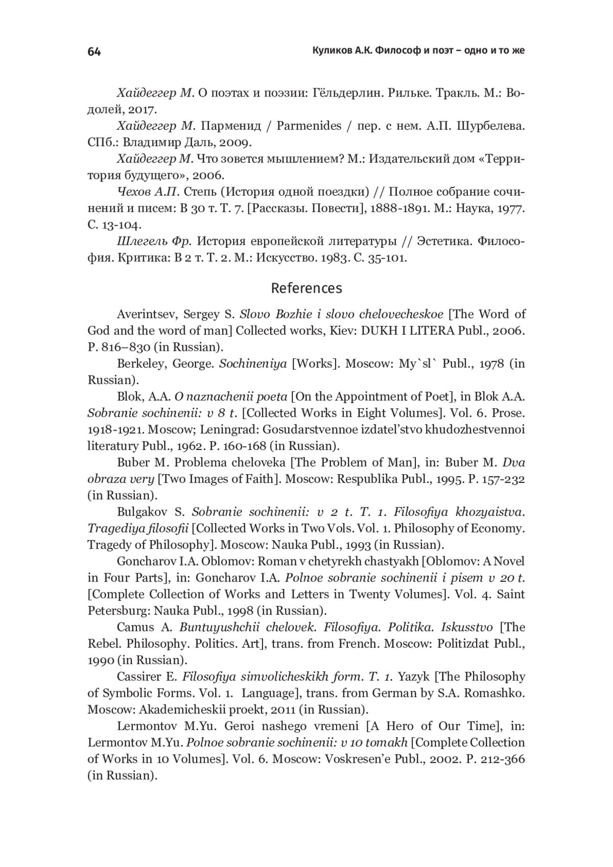 В статье излагается авторское понимание соотношения философии и поэзии. Философия не только зарождалась как поэзия досократиков, но и никогда не могла перестать быть поэзией. Настоящий мыслитель и настоящий поэт – это в конечном счете одно и то же, настаивали в прошлом веке такие классики, как М. Хайдеггер или С. Булгаков. Для решения философских задач недостаточно логически выстроенной спекуляции, недостаточно средств объективирующего дискурсивного мышления. Нельзя понять тайну зла и невинных страданий, если отгородиться от них некой теорией зла и рациональным объяснением страданий. Невозможно говорить о тайне красоты или человеческой личности, если вместо них иметь дело только с понятием о личности или с красотой как с предметом знания, обозреваемым исследователем со стороны. Понять эти тайны можно только в живом участии в них: их нужно испытать и пережить, а не опредметить, не аналитически расчленить как «простую гамму». Поэтому философия и прибегает к особому, не объективирующему, модусу речи – к речи поэтической. Поэзия не монолог автора, она событийна в двойном смысле слова: в словах поэта как в живом разговоре выговаривает себя и само бытие. Природа, красота или страдание не предстоят поэту как предмет изучения и не удваиваются в его представлениях о них, но сбываются с ним, говорят за себя в его словах. Слово поэта не дает истинное описание мира, но мир, который и сам, по существу, есть слово, в поэзии сбывается как истинный, как слово непотаенное. Обрести это слово и дать ему звучать вместе с человеческим – дело философии, которая тогда и оказывается поэзией, когда не моделирует мир, но призывает его к диалогу как бытию в несокрытости.