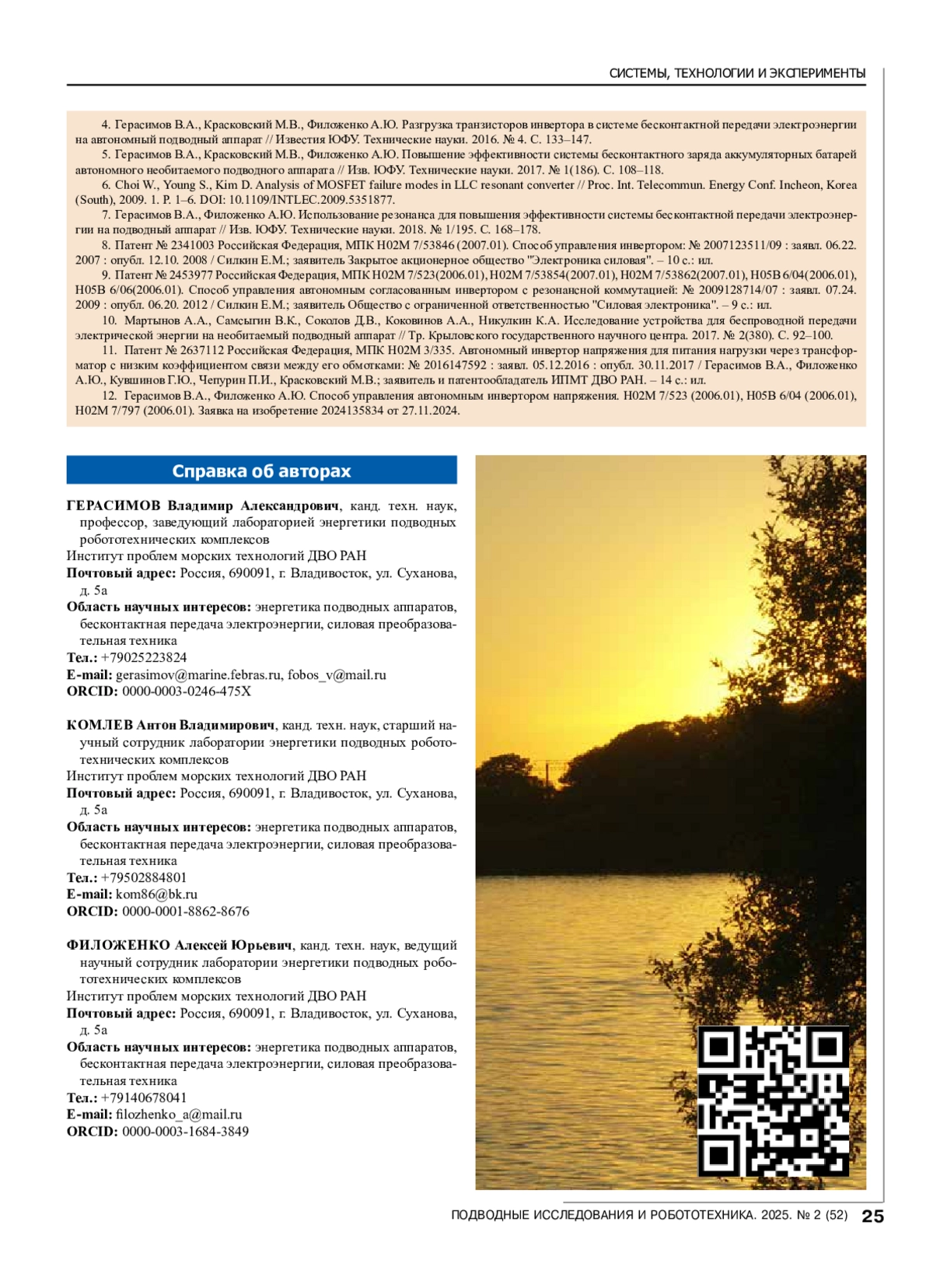 Статья: АВТОНОМНЫЕ ИНВЕРТОРЫ НАПРЯЖЕНИЯ В СИСТЕМАХ ЭЛЕКТРООБЕСПЕЧЕНИЯ ПОДВОДНЫХ ОБЪЕКТОВ (2025)