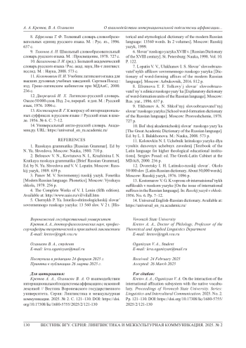 13. Костомаров В. Г. К вопросу об интернациональных суффиксах в русском языке // Русский язык в школе. 1956. № 6. С. 7-12. EDN: CRUENM