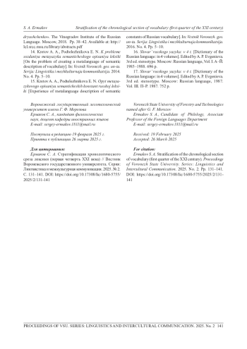 14. Кретов А. А., Подтележникова Е. Н. К проблеме создания метаязыка семантического описания лексики // Вестник Воронеж. гос. ун-та. Сер.: Лингвистика и межкультурная коммуникация. 2014. № 4. С. 5-10.