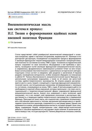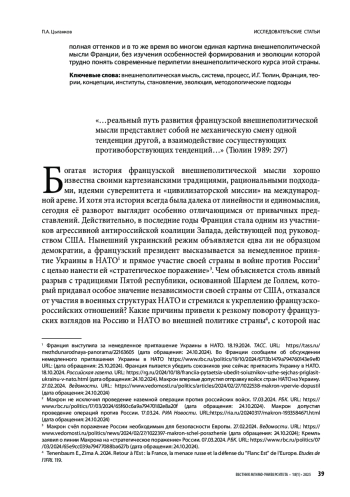 Статья: Внешнеполитическая мысль как система и процесс: И. Г. Тюлин о формировании идейных основ внешней политики Франции (2025)