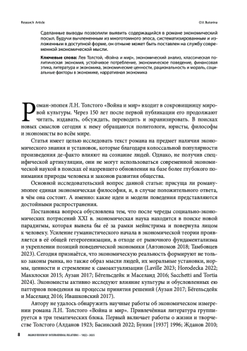 3. Brennan G. and Waterman A.M.C. 2021. Economics Meets War and Peace Tolstoy’s Implicit Social Theory. The Independent Review. A Journal of Political Economy. 3(25). P. 397-410.