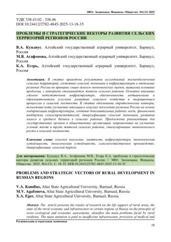 В статье приведены результаты исследований жизнеобеспечения сельских территорий, состояния сельской экономики и инфраструктуры в отдельных регионах России по принципу социо-эколого-экономических оценок, выявлены основные проблемы, с которыми сталкиваются жители сельских районов. Основное внимание уделено недостаточной инфраструктуре, обеспеченности медицинскими и образовательными услугами, развитию сельского хозяйства и миграционным процессам в сельской местности. В статье обоснованы стратегические векторы, возможные пути улучшения ситуации в сельских поселениях регионов России на основе модернизации инфраструктуры, создания дополнительных рабочих мест, финансовой поддержки сельхозпроизводителей, диверсификации сельской экономики, развития малого и среднего бизнеса в сельских районах. Предложены рекомендации для государственных органов и общественных организаций, направленные на улучшение условий жизни и труда жителей сельских районов, стимулирование экономического роста в сельской местности.