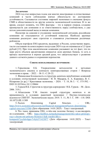 2. Финансовая безопасность и структура капитала непубличных компаний в условиях отечественной экономики / И. Н. Макаров, Е. А. Кореняко, В. С. Назаренко [и др.] // Креативная экономика. - 2024. - Т. 18, № 3. - С. 575-592. DOI: 10.18334/ce.18.3.120664