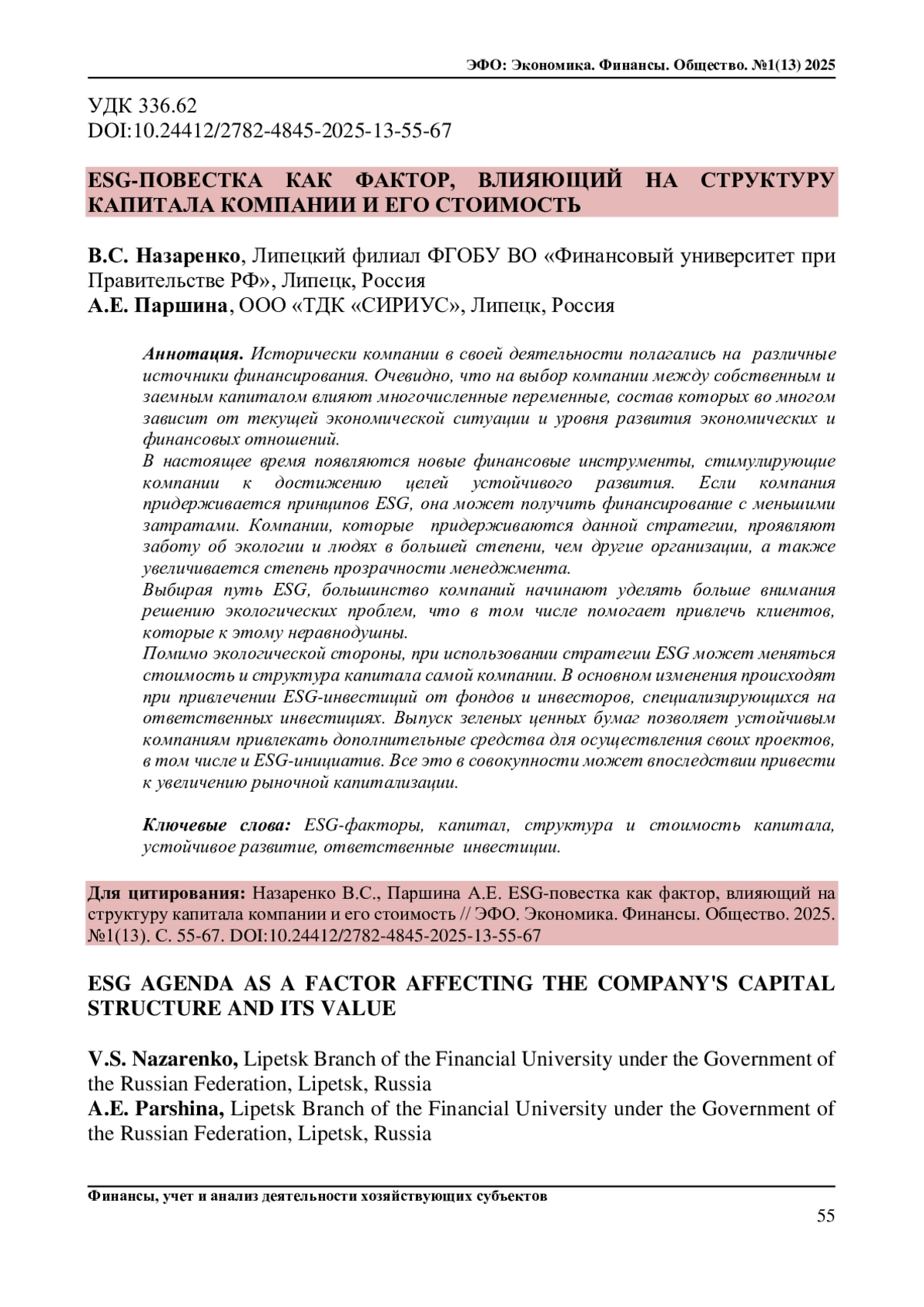 9. Макарова, С. Г. Структура капитала как инструмент снижения издержек агентского конфликта между акционерами и кредиторами российских компаний / С. Г. Макарова, Д. В. Елков // Проблемы функционирования современного государства: право, политика, экономика. - Москва: Издательский Дом “Научное обозрение”, 2015. - С. 65-83. EDN: VGYZDF
