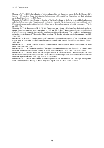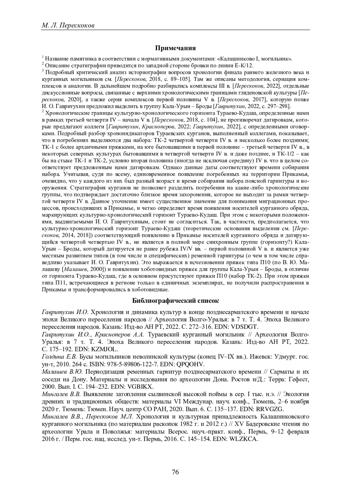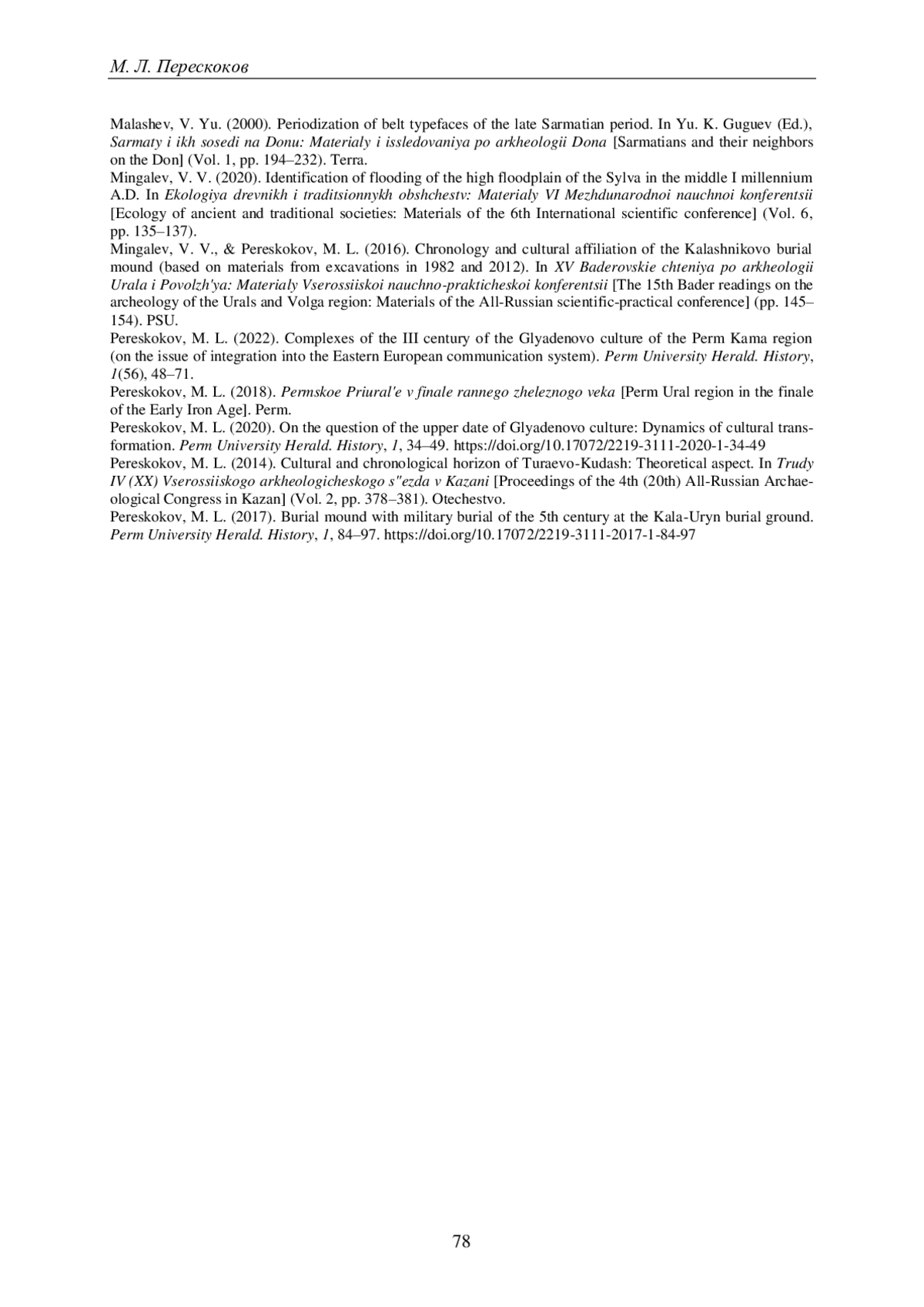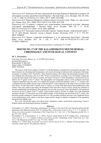 ПЕРЕСКОКОВ М. Л. КУРГАН № 17 КАЛАШНИКОВСКОГО МОГИЛЬНИКА: ХРОНОЛОГИЯ И ЭКОЛОГИЧЕСКИЙ КОНТЕКСТ // ВЕСТНИК ПЕРМСКОГО УНИВЕРСИТЕТА. ИСТОРИЯ. 2025. № 1 (68)