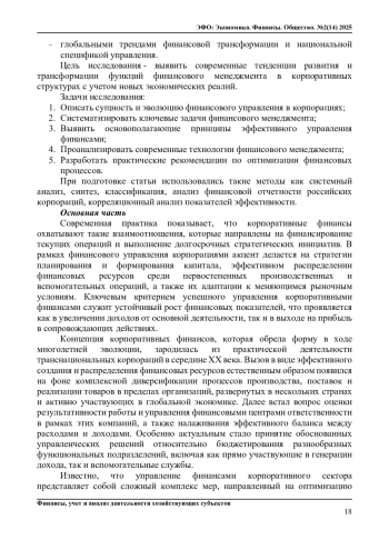 Статья: РОЛЬ И ФУНКЦИИ ФИНАНСОВОГО МЕНЕДЖМЕНТА В КОРПОРАТИВНЫХ СТРУКТУРАХ (2025)