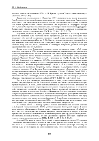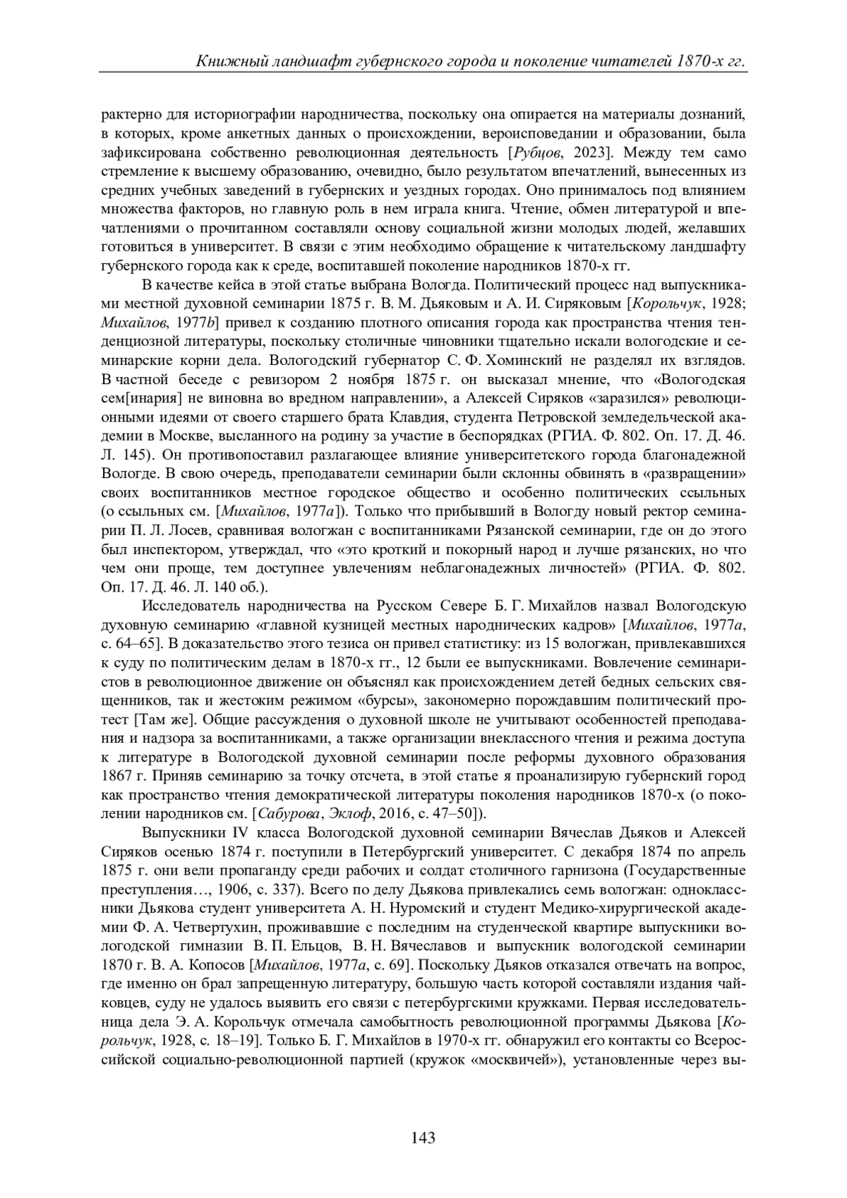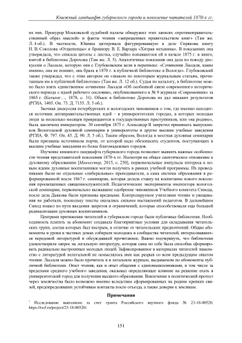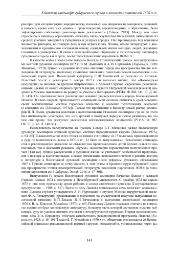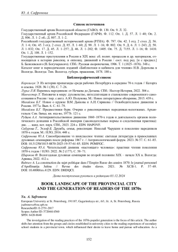 Ключевые фразы: история чтения, вологодская духовная семинария, НАРОДНИЧЕСТВО, поколение 1870-х, губернский город, ВОЛОГДА