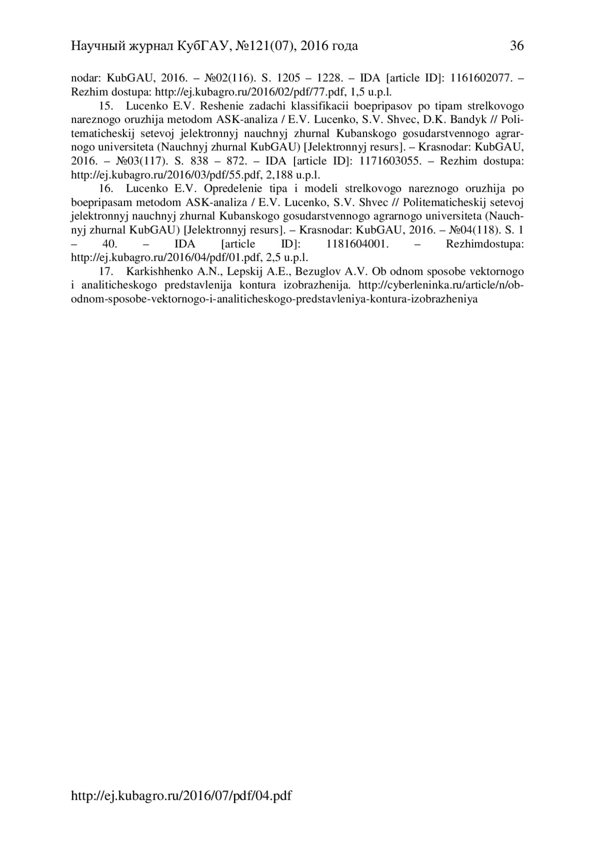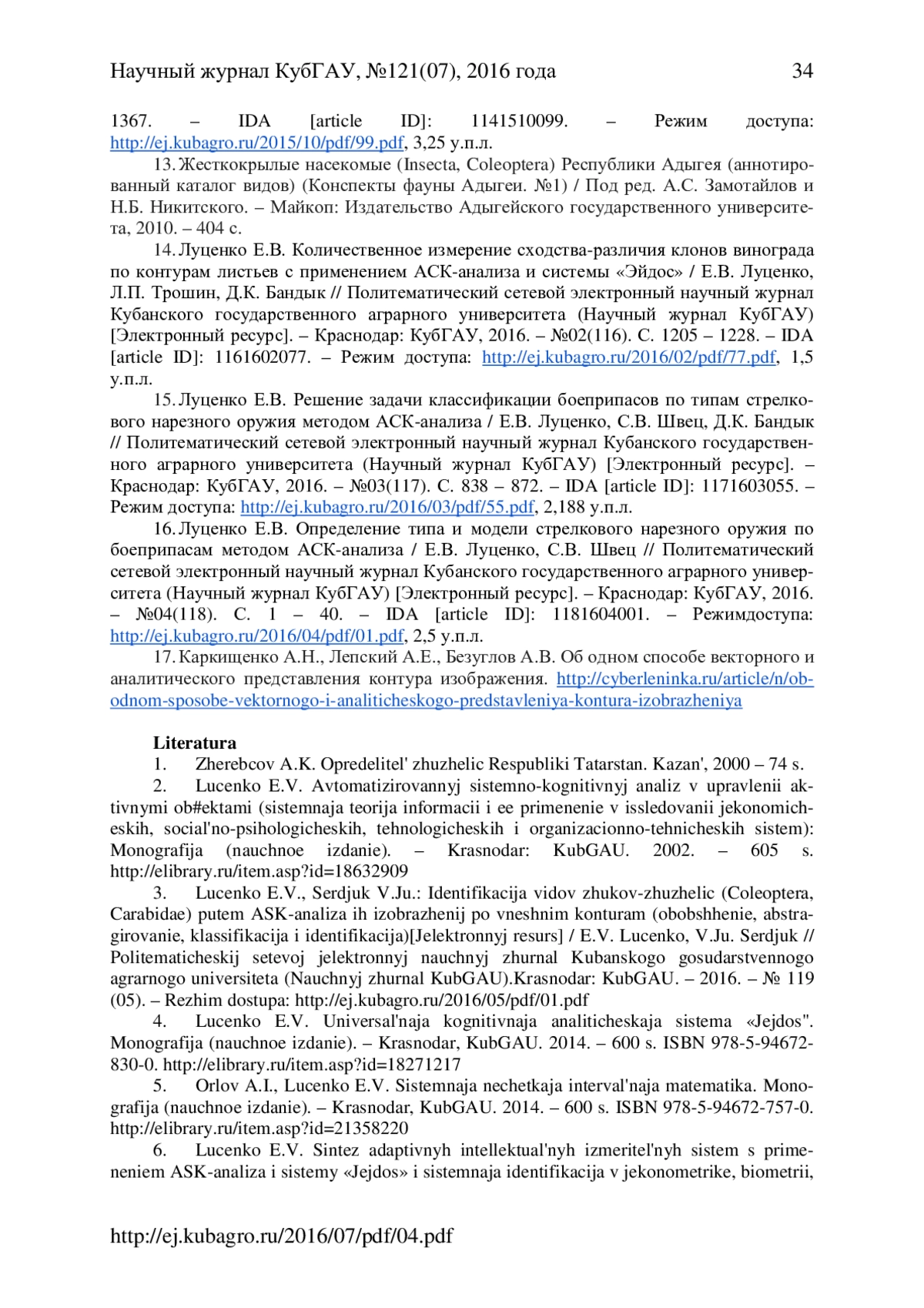 СЕРДЮК В. Ю., ЛУЦЕНКО Е. В. КЛАССИФИКАЦИЯ ЖУКОВ-ЖУЖЕЛИЦ (COLEOPTERA, CARABIDAE) ПО ВИДАМ И РОДАМ ПУТЕМ АСК-АНАЛИЗА ИХ ИЗОБРАЖЕНИЙ