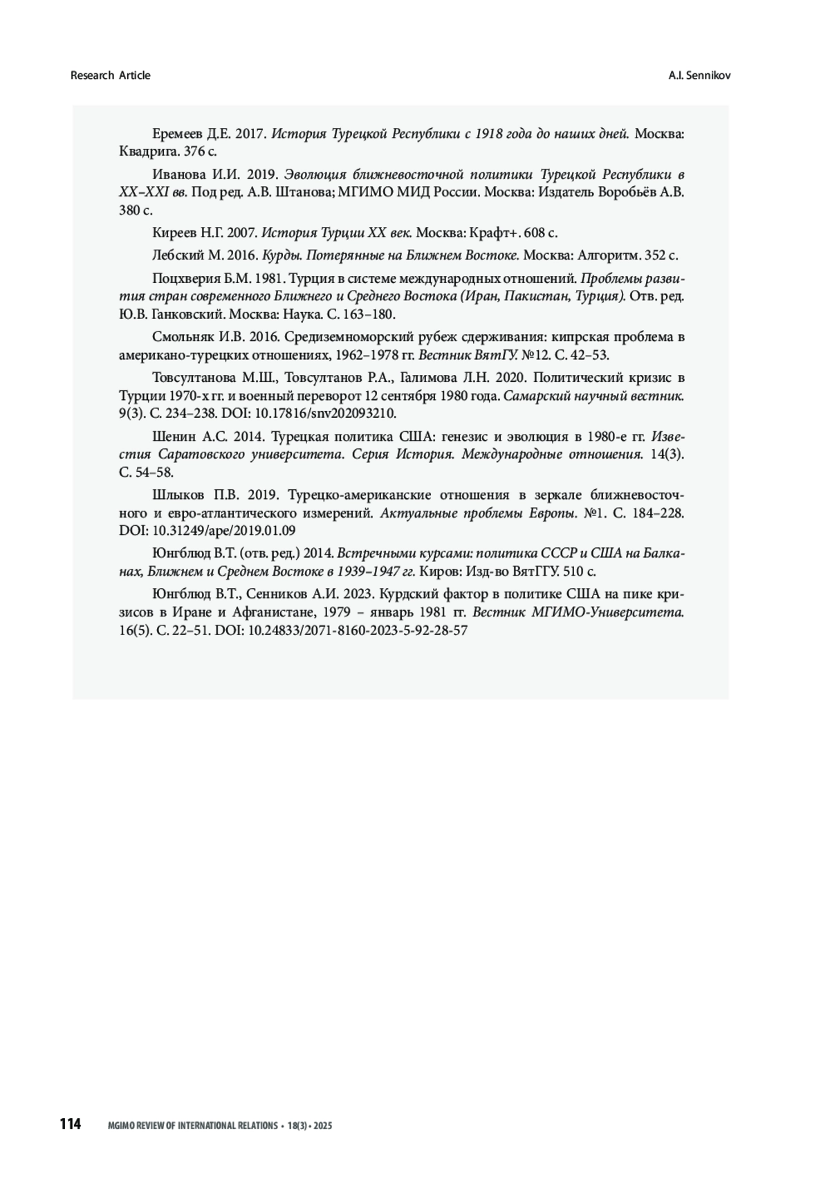 28. Иванова И.И. 2019. Эволюция ближневосточной политики Турецкой Республики в XX-XXI вв. Под ред. А.В. Штанова; МГИМО МИД России. Москва: Издатель Воробьёв А.В. 380 c.