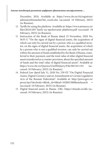 15. Цифровые финансовые активы в России. URL: https://cbonds.ru/dfa (дата обращения: 10 февраля 2025 года).