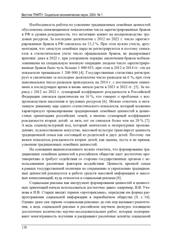 Введение. Первым стратегическим национальным приоритетом в «Стратегии национальной безопасности Российской Федерации», требующим реализации, является сбережение народа России и развитие человеческого потенциала [1], что обеспечивается решением целого ряда поставленных задач, в том числе в рамках семейной политики государства в соответствии с Национальным проектом «Демография» [2]. К традиционным ценностям российского общества наряду с достоинством, свободой, патриотизмом относится и ценность крепкой семьи
