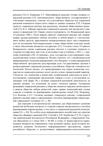14. Зайцева И.А. Социальная реклама как новый взгляд на проблемы современного общества // Цифровизация общества и медиаобразовательная стратегия регионов России: материалы Всерос. науч. конф. - Елец: Изд-во Елец. гос. ун-та, 2021. - С. 32-36. EDN: JVETXG