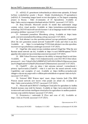 2. Тадтаев Г. Россияне назвали свои главные страхи перед искусственным интеллектом [Электронный ресурс]. - URL: https://www.rbc.ru/society/28/12/2022/63ab45de9a7947664c3ef893 (дата обращения: 15.07.2023).