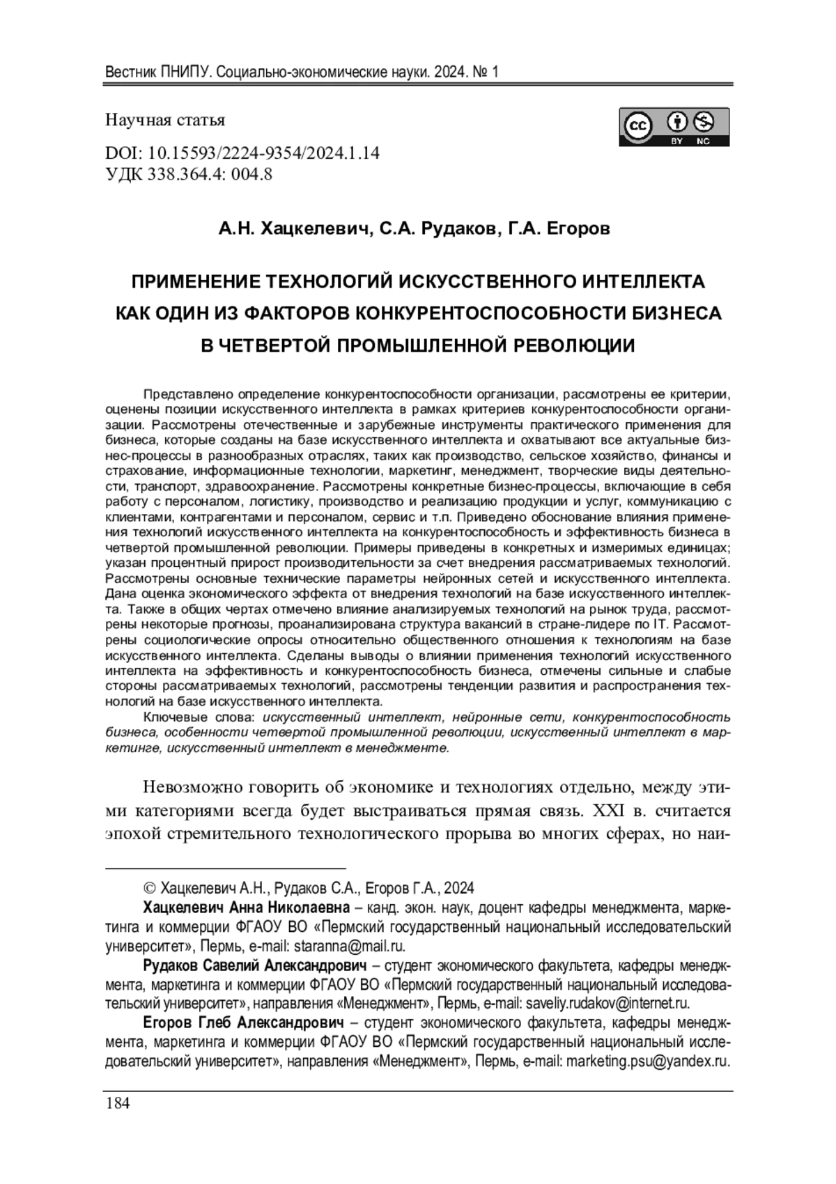 Невозможно говорить об экономике и технологиях отдельно, между этими категориями всегда будет выстраиваться прямая связь. XXI в. считается эпохой стремительного технологического прорыва во многих сферах, но наибольший прогресс наблюдается в отрасли информационных технологий, особенно активно развивается искусственный интеллект (ИИ). Поэтому рассматривая те или иные экономические вопросы, необходимо уделять пристальное внимание именно этой сфере