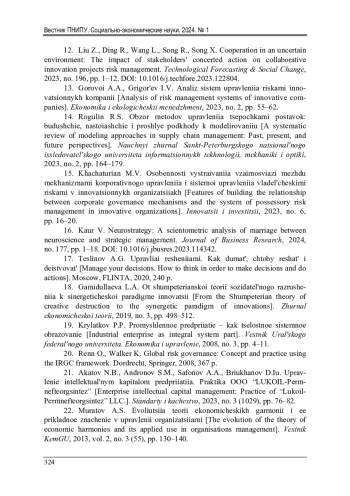 12. Cooperation in an uncertain environment: The impact of stakeholders’ concerted action on collaborative innovation projects risk management / Z. Liu, R. Ding, L. Wang, R. Song, X. Song // Technological Forecasting & Social Change. - 2023. - № 196. - Р. 1-12. -. DOI: 10.1016/j.techfore.2023.122804 EDN: OEZNCE