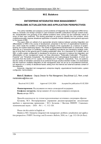 23. Бутакова М.Э., Чиа Дж.П. Концепция риск-аппетита на операционном уровне предприятия // Шумпетеровские чтения - VIII: материалы VIII междунар. науч.-практ. конф. - Пермь: Изд-во Перм. гос. техн. ун-та, 2018. - С. 61-72.