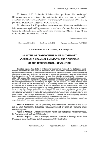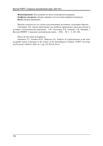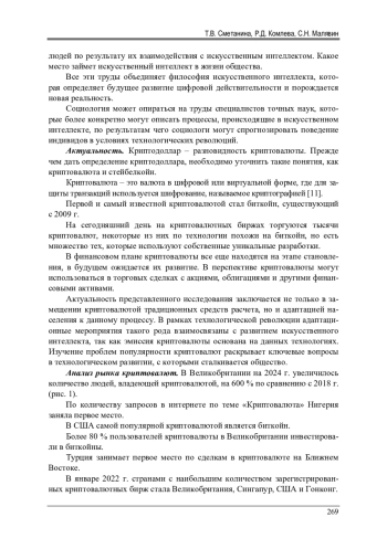 25. Резаев, А.В. Является ли криптовалюта проблемой для социолога? / А.В. Резаев // Телескоп: журнал социологических и маркетинговых исследований. - 2023. - № 3. - С. 53-60. DOI: 10.24412/1994-3776-2023-3-53-60 EDN: RDMPIU