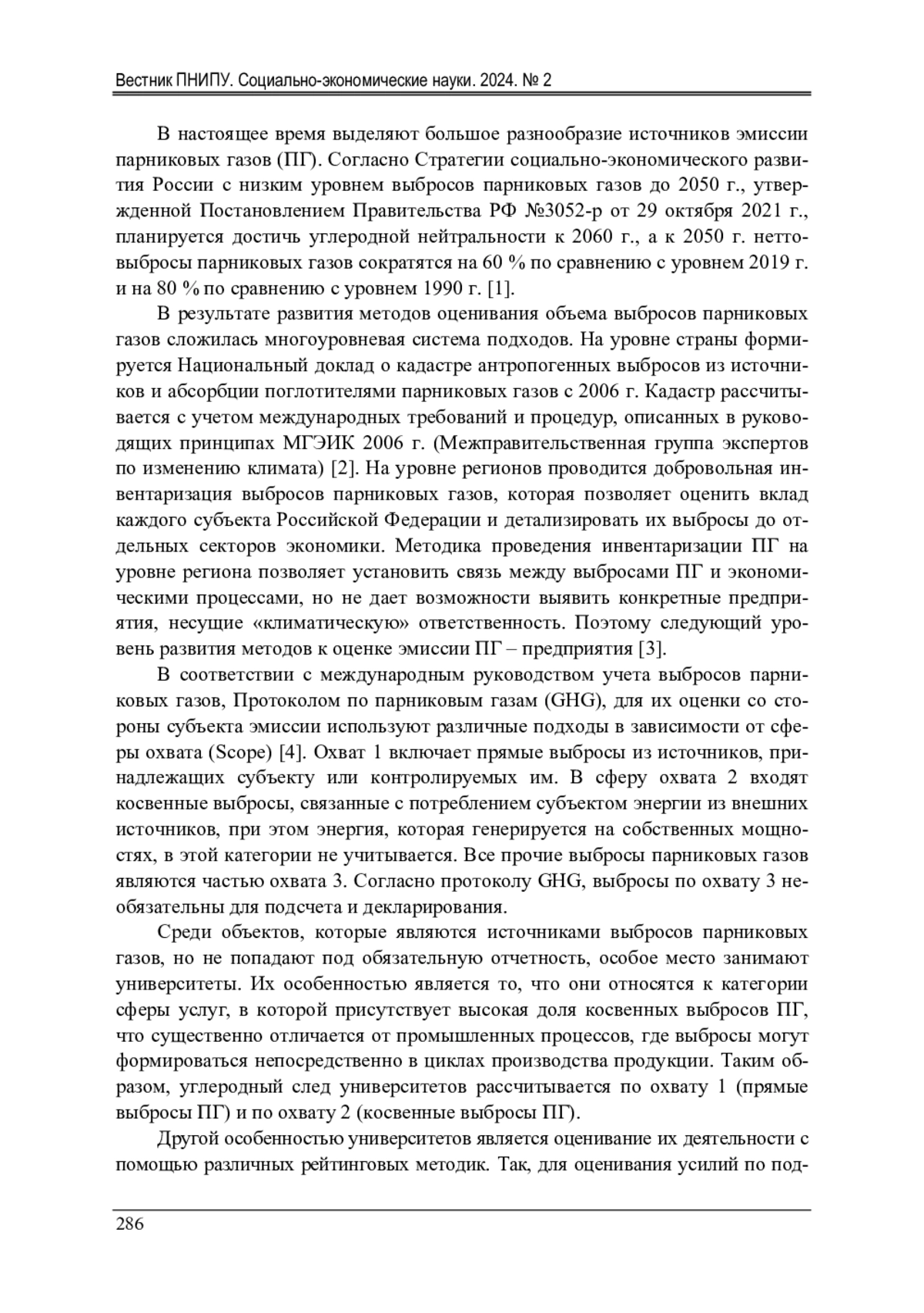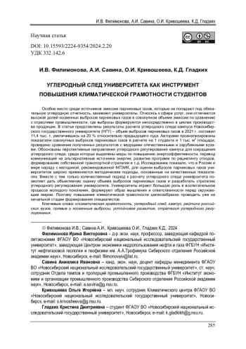ФИЛИМОНОВА И. В., САВИНА А. И., КРИВОШЕЕВА О. И., ГЛАДКИХ К. Д. УГЛЕРОДНЫЙ СЛЕД УНИВЕРСИТЕТА КАК ИНСТРУМЕНТ ПОВЫШЕНИЯ КЛИМАТИЧЕСКОЙ ГРАМОТНОСТИ СТУДЕНТОВ // ВЕСТНИК ПЕРМСКОГО НАЦИОНАЛЬНОГО ИССЛЕДОВАТЕЛЬСКОГО ПОЛИТЕХНИЧЕСКОГО УНИВЕРСИТЕТА. СОЦИАЛЬНО-ЭКОНОМИЧЕСКИЕ НАУКИ. 2024. № 2