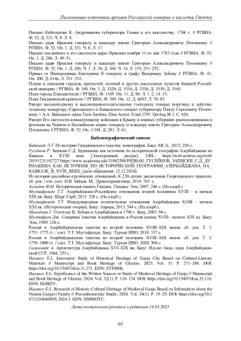 34. Hasanov E.L. Significance of the Written Sources in Study of Medieval Heritage of Ganja // Manuscript and Book Heritage of Ukraine. 2024. Vol. 32(1). P. 116-134. DOI: 10.15407/rksu.32.116 EDN: EEJRZV