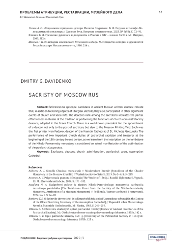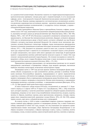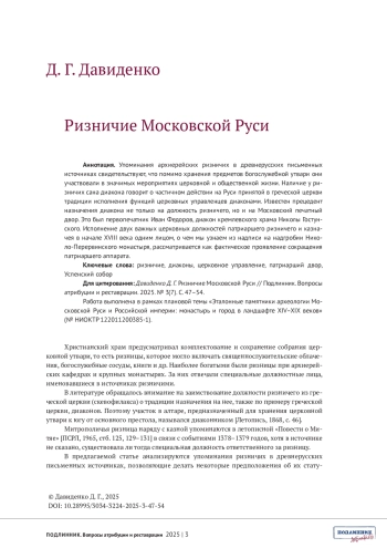 ДАВИДЕНКО Д.Г. РИЗНИЧИЕ МОСКОВСКОЙ РУСИ // ПОДЛИННИК. ВОПРОСЫ АТРИБУЦИИ И РЕСТАВРАЦИИ. 2025. № 3 (7)