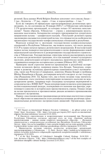 Статья: ТРАНСФОРМАЦИЯ ГОСУДАРСТВЕННО-КОНФЕССИОНАЛЬНЫХ ОТНОШЕНИЙ В УЗБЕКИСТАНЕ ОТ ОБРЕТЕНИЯ НЕЗАВИСИМОСТИ ДО РЕФОРМ 2020-Х ГГ.: КРАТКИЙ ОБЗОР (2025)