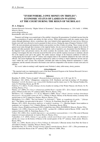 ДОЛГОВА М. А. "ВЕЗДЕ ДОЛЖНА ПО МЕЛОЧАМ": ЭКОНОМИЧЕСКОЕ ПОЛОЖЕНИЕ ФРЕЙЛИН ПРИ ДВОРЕ НИКОЛАЯ I // ВЕСТНИК ПЕРМСКОГО УНИВЕРСИТЕТА. ИСТОРИЯ. 2024. № 1 (64)
