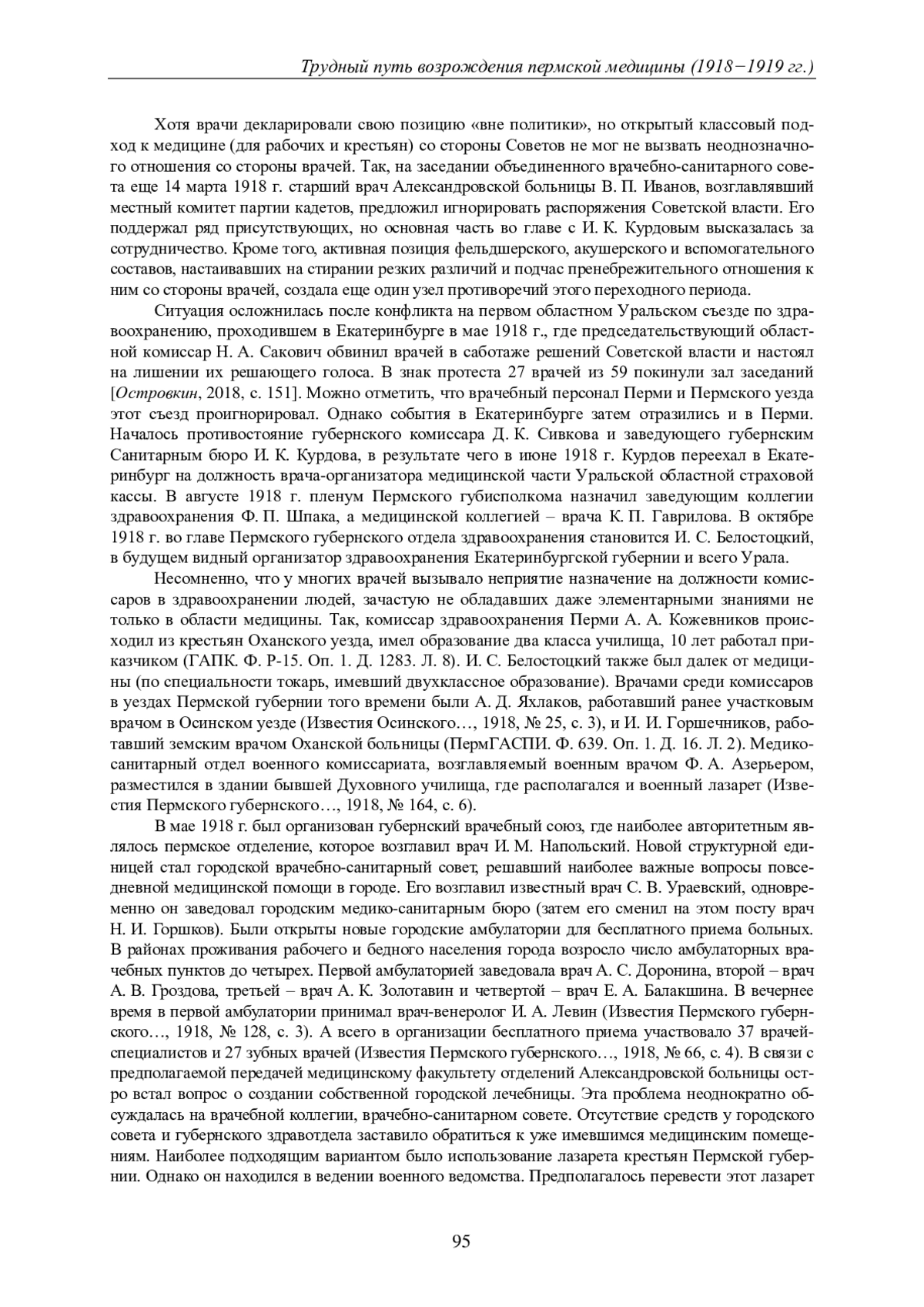 Статья: ТРУДНЫЙ ПУТЬ ВОЗРОЖДЕНИЯ ПЕРМСКОЙ МЕДИЦИНЫ (1918-1919 ГОДЫ) (2024)