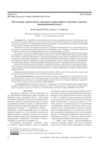 7. Рубановат Н. И., Гудкова Н. К., Горбунова Т. Л. Креативная индустрия в действии: циркулярная экономика и преобразование нарушенных территорий в уникальные туристические объекты II Материалы I Международной научной конференции “Творчество и бизнес”, 2024, с. 18-22.