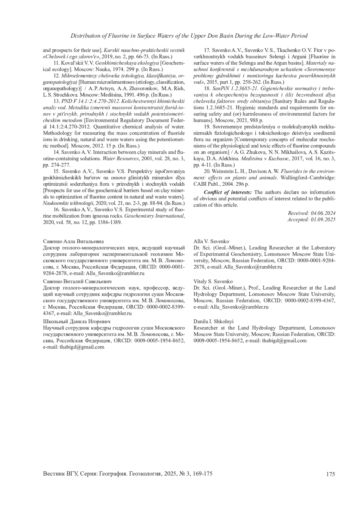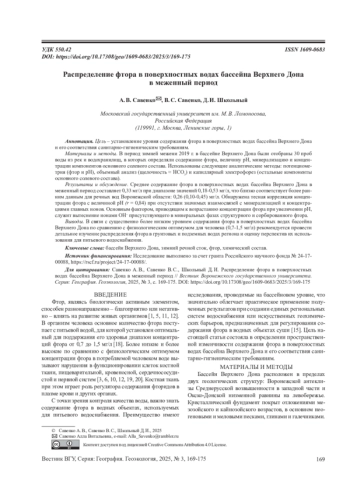САВЕНКО А. В., САВЕНКО В. С., ШКОЛЬНЫЙ Д. И. РАСПРЕДЕЛЕНИЕ ФТОРА В ПОВЕРХНОСТНЫХ ВОДАХ БАССЕЙНА ВЕРХНЕГО ДОНА В МЕЖЕННЫЙ ПЕРИОД // ВЕСТНИК ВОРОНЕЖСКОГО ГОСУДАРСТВЕННОГО УНИВЕРСИТЕТА. СЕРИЯ: ГЕОГРАФИЯ. ГЕОЭКОЛОГИЯ. 2025. № 3