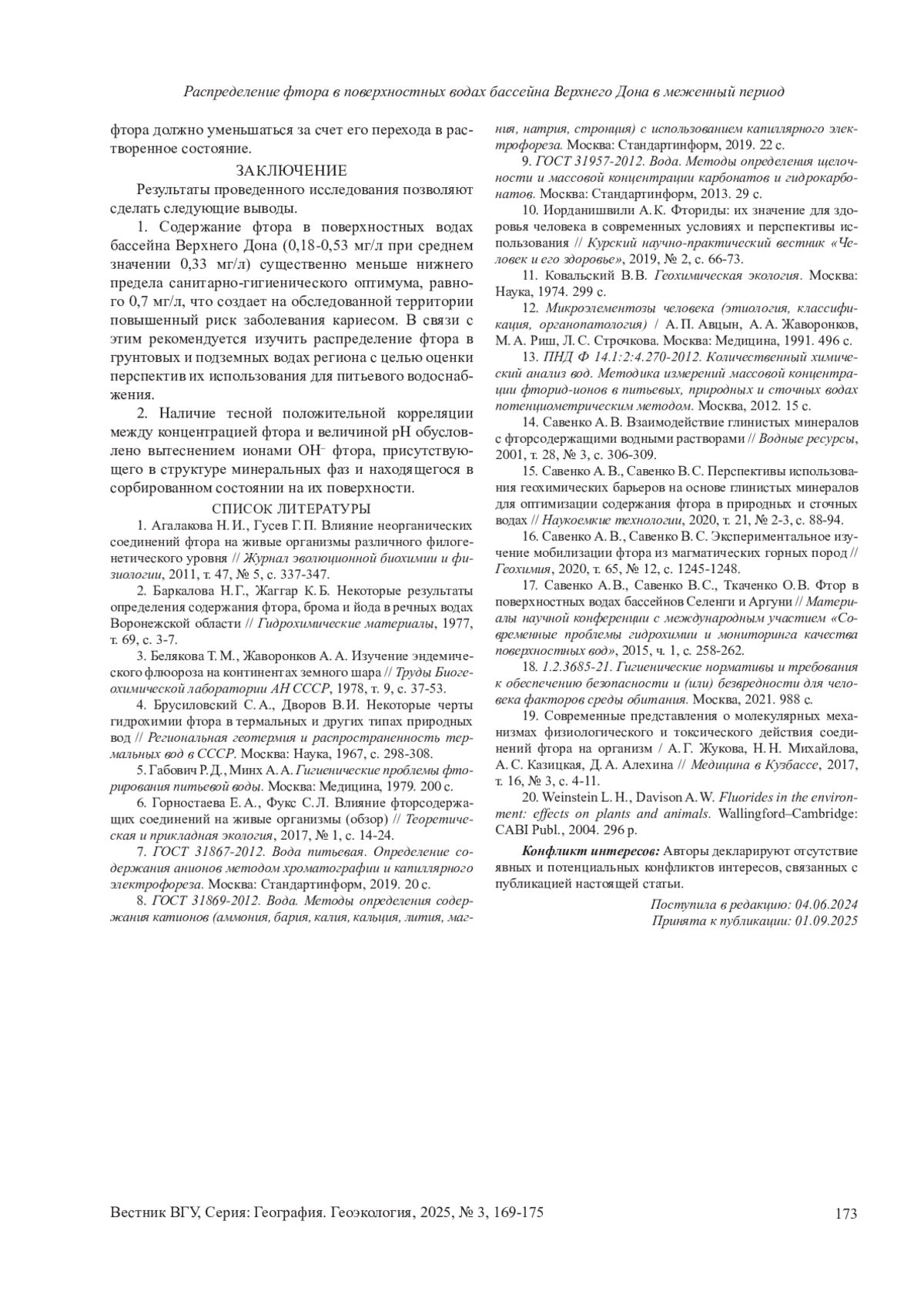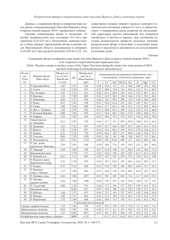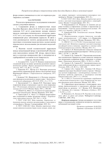 Статья: РАСПРЕДЕЛЕНИЕ ФТОРА В ПОВЕРХНОСТНЫХ ВОДАХ БАССЕЙНА ВЕРХНЕГО ДОНА В МЕЖЕННЫЙ ПЕРИОД (2025)