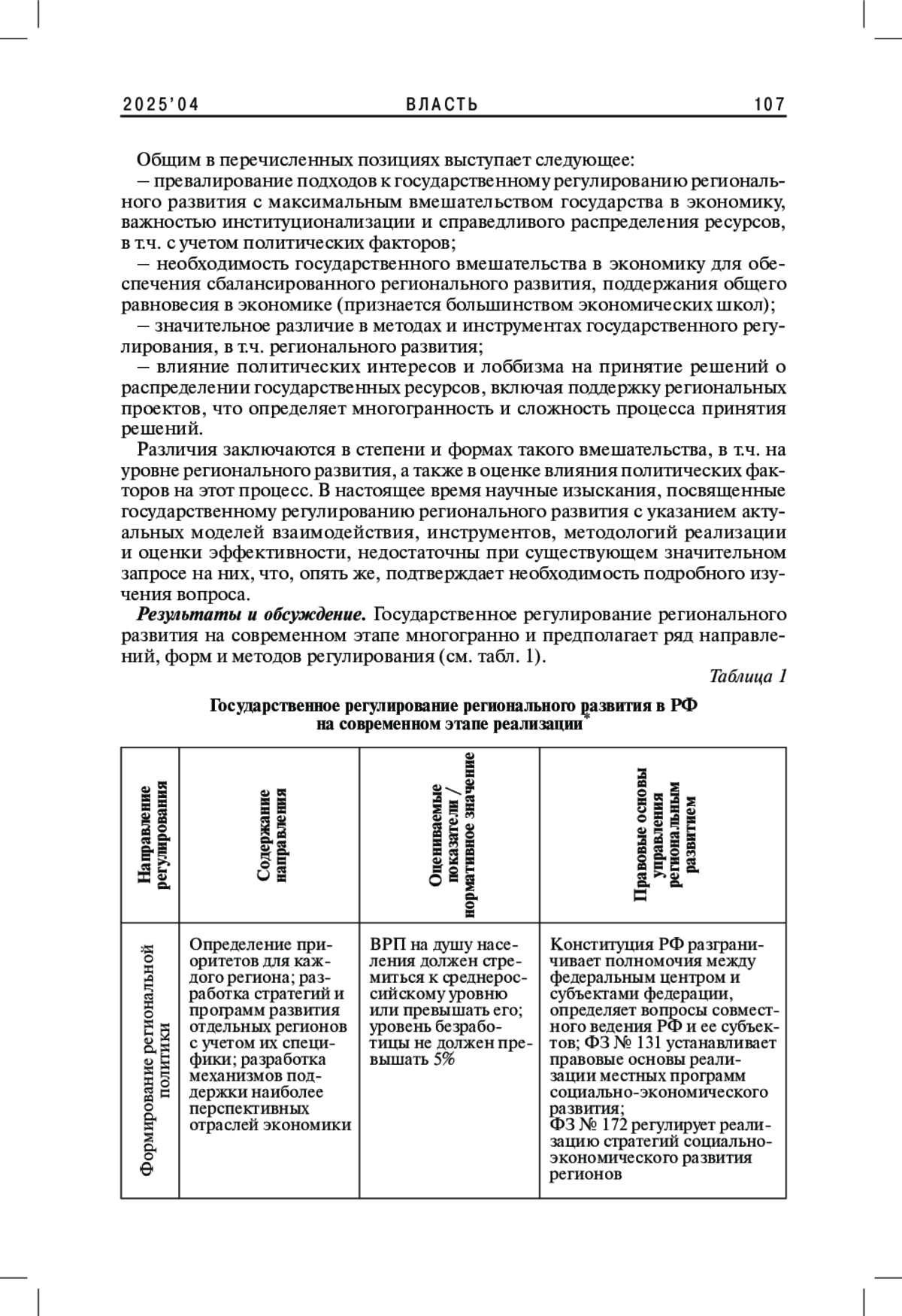 Тема государственного регулирования регионального развития раскрывается с позиции теории и практики государственного управления, снижения социально-экономического неравенства отдельных регионов страны и достижения сбалансированного развития территорий. Автор обобщает теоретические основы оценки государственного регулирования регионального развития и выделяет семь направлений регулирования: формирование региональной политики, финансовую поддержку, инвестиционную политику, социальную политику, развитие инфраструктуры, экологическую политику, научно-техническое сотрудничество, мониторинг и контроль, а также соответствующую систему мер, включая выработку целей, задач государственного регулирования регионального развития, мероприятий по их достижению, формализованную в виде документов стратегического планирования, показателей оценки его эффективности. В статье выделяются цели и задачи, формы, методы и инструменты регулирования регионального развития на современном этапе. Значимой характеристикой государственного регулирования регионального развития в РФ в настоящее время является увеличение роли программно-целевого подхода, который, заменяя затратный подход, выступает элементом управления социально-экономическими процессами на уровне регионов, позволяя управлять целеполаганием, формировать ресурсное сопровождение, выстраивать дорожные карты и время работ по достижению целей, учитывать региональную специфику при управлении, адаптировать государственные стратегии к местному заделу. На примере отдельной региональной программы поддержки автор изучает порядок реализации программно-целевого подхода и его результативность, нормативно-правовое сопровождение, индикаторы оценки эффективности (результативности) государственного регулирования регионального развития.