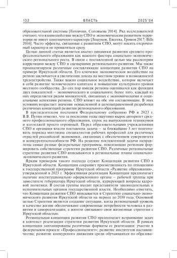 В статье выполняется анализ динамики развития среднего профессионального образования как важного фактора социально-экономического регионального роста. Автор рассматривает различные корреляции между СПО и сценариями регионального развития, описывает различные составляющие концепции развития СПО на примере Иркутской области. В статье показано, что система среднего профессионального образования может выступать и драйвером социально-экономической трансформации области, и возможным механизмом решения проблем, связанных с зависимостью от традиционного сырьевого сценария развития региона.