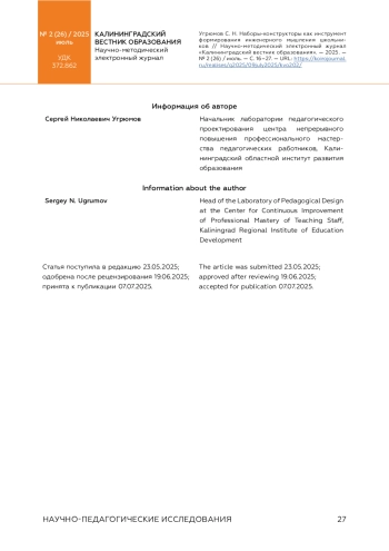 Благодарности: выражаю глубокую признательность Лилии Алексеевне Зорькиной, ректору Калининградского областного института развития образования, за организационную поддержку и создание условий для реализации исследовательского проекта. Особая благодарность Валерии Павловне Вейдт, проректору по научно-методической работе института, за профессиональное сопровождение, ценные рекомендации по структурированию данных и помощь в подготовке методических материалов. Их экспертиза и вовлеченность в развитие инженерного образования стали ключевыми факторами успешного выполнения работы.