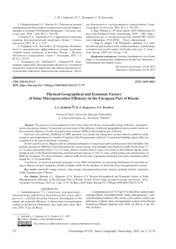 Статья: ФИЗИКО-ГЕОГРАФИЧЕСКИЕ И ЭКОНОМИЧЕСКИЕ ФАКТОРЫ ЭФФЕКТИВНОСТИ СОЛНЕЧНОЙ МИКРОГЕНЕРАЦИИ В ЕВРОПЕЙСКОЙ ЧАСТИ РОССИИ (2025)