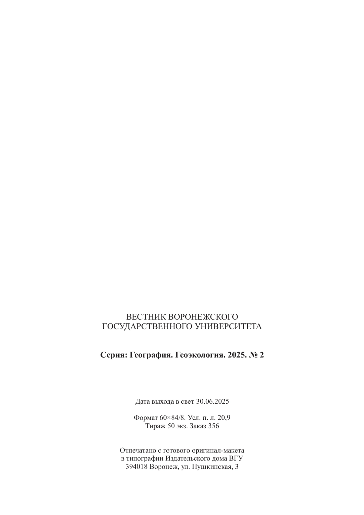 Журнал: ВЕСТНИК ВОРОНЕЖСКОГО ГОСУДАРСТВЕННОГО УНИВЕРСИТЕТА. СЕРИЯ: ГЕОГРАФИЯ. ГЕОЭКОЛОГИЯ