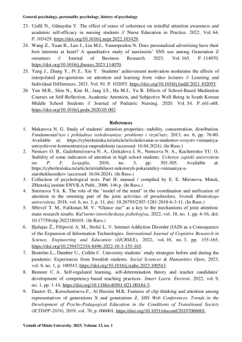 12. Liu M., Zuo J., Tao Y., Zhao L., Wu S., Feng L., Liao L. Influencing factors of learning sustained attention for nursing students in online settings: A structural equation model // Nurse Education Today. 2022. Vol. 111. P. 105248. https://doi.org/10.1016/j.nedt.2021.105248.
