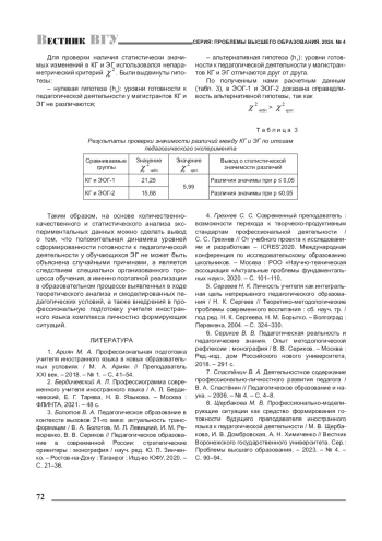 1. Ариян М. А. Профессиональная подготовка учителя иностранного языка в новых образовательных условиях / М. А. Ариян // Преподаватель XXI век. -2018,- №1.-С.41-54. EDN: YVVQPW
