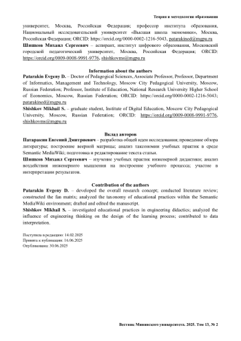 Обсуждение и заключения. Предложенный фреймворк в виде веерной матрицы позволяет выявить перспективные направления исследований на пересечении различных дисциплин, что открывает новые возможности для образовательных практик. Исследование акцентирует внимание на том, как дидактика может заимствовать элементы из других областей, чтобы развивать эффективные учебные курсы и формировать ключевые компоненты инженерного, вычислительного и модельного мышления.