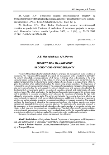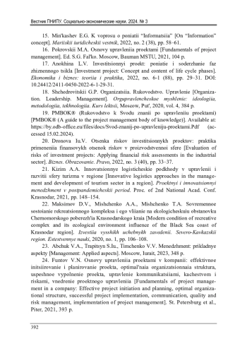 Статья: УПРАВЛЕНИЕ РИСКАМИ ПРОЕКТА В УСЛОВИЯХ НЕОПРЕДЕЛЕННОСТИ (2024)