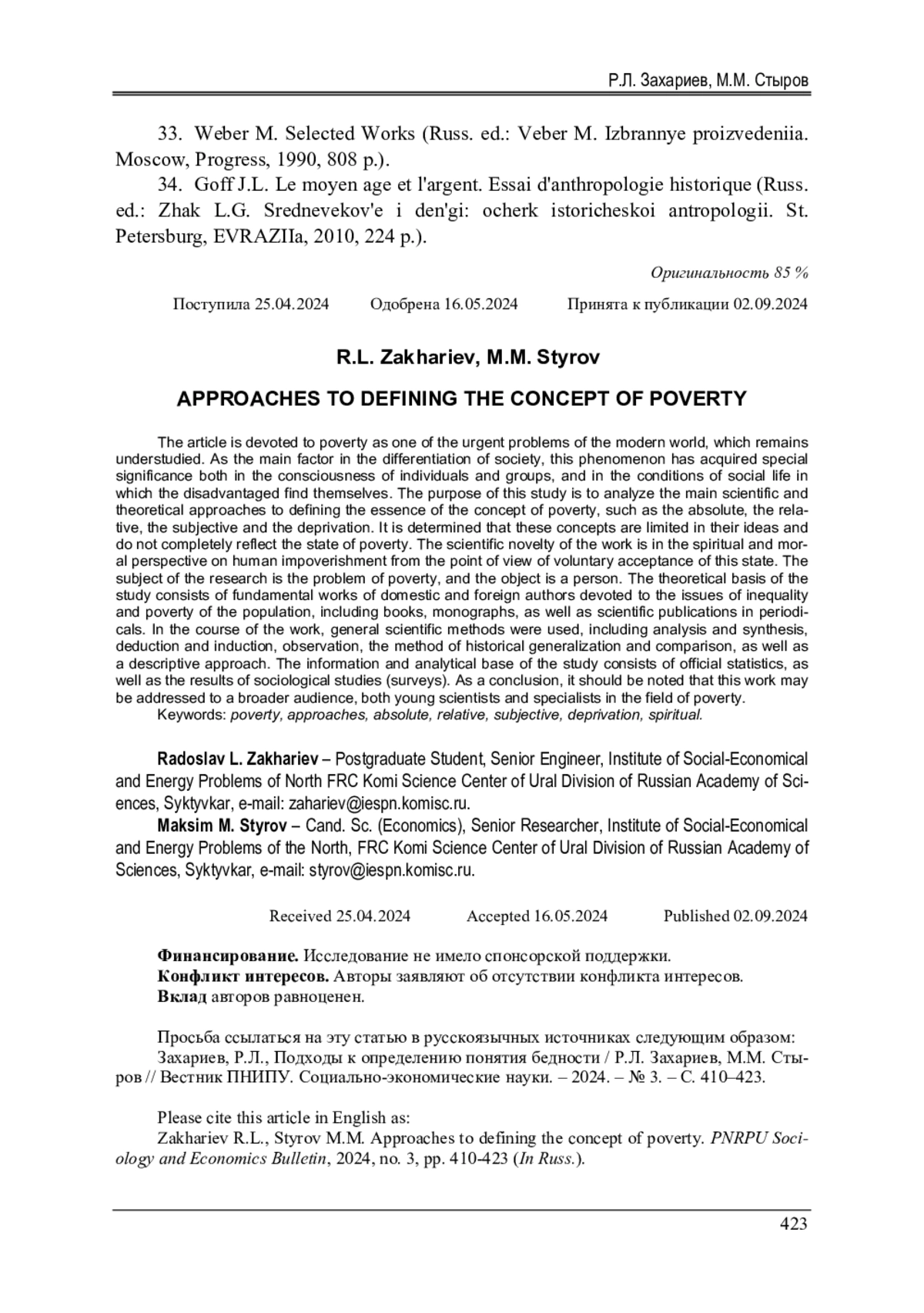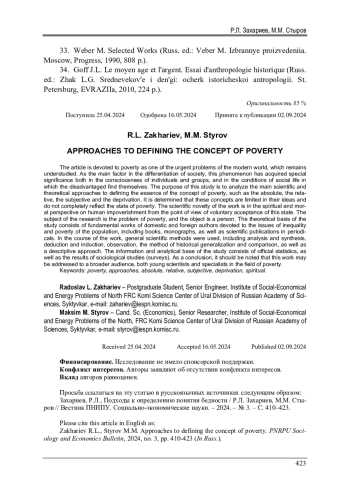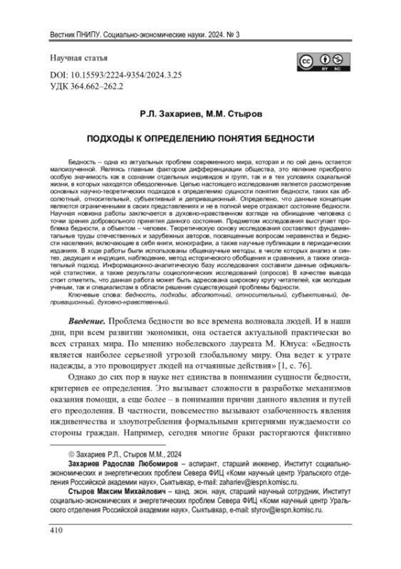 ЗАХАРИЕВ Р. Л., СТЫРОВ М. М. ПОДХОДЫ К ОПРЕДЕЛЕНИЮ ПОНЯТИЯ БЕДНОСТИ // ВЕСТНИК ПЕРМСКОГО НАЦИОНАЛЬНОГО ИССЛЕДОВАТЕЛЬСКОГО ПОЛИТЕХНИЧЕСКОГО УНИВЕРСИТЕТА. СОЦИАЛЬНО-ЭКОНОМИЧЕСКИЕ НАУКИ. 2024. № 3