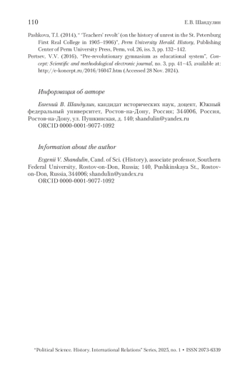 4. Пашкова 2014 - Пашкова Т.И. «Учительский бунт» (к истории волнений в Санкт-Петербургском Первом реальном училище в 1905-1906 гг.) // Вестник Пермского университета. Серия: «История». 2014. Вып. 3 (26). С. 132-142.
