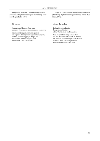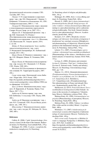 5. Лехциер В.Л. Феноменология “пере”: введение в экзистенциальную аналитику переходности. Самара: Изд-во Самар. ун-та, 2007. 332 с. EDN: QWPVNR
