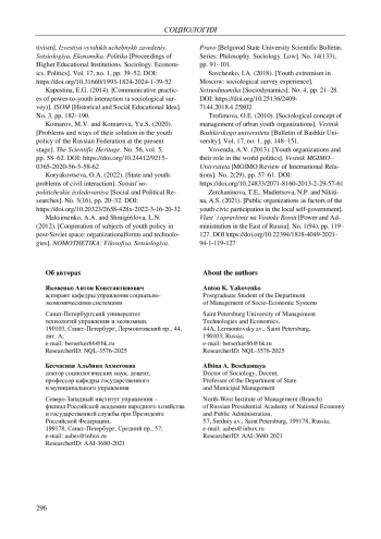 ЯКОВЕНКО А. К., БЕСЧАСНАЯ А. А. МОЛОДЕЖНЫЕ ОРГАНИЗАЦИИ: ТИПЫ И ЭТАПЫ ФОРМИРОВАНИЯ ВЗАИМОДЕЙСТВИЯ С ГОСУДАРСТВОМ (ПО МАТЕРИАЛАМ РОССИЙСКИХ СОЦИОЛОГИЧЕСКИХ ИССЛЕДОВАНИЙ) // ВЕСТНИК ПЕРМСКОГО УНИВЕРСИТЕТА. ФИЛОСОФИЯ. ПСИХОЛОГИЯ. СОЦИОЛОГИЯ. 2025. № 2