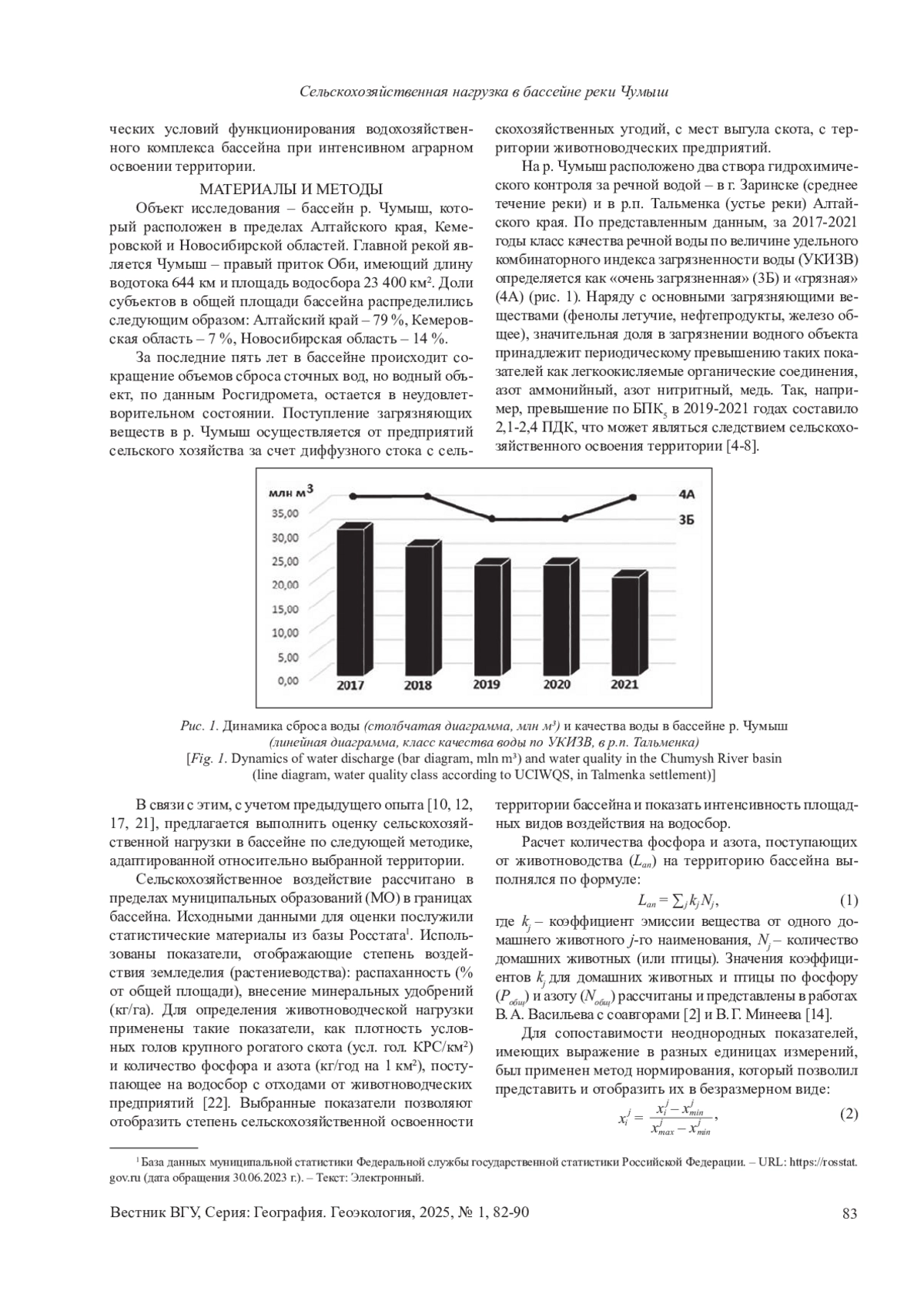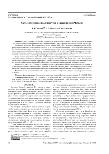 КУРЕПИНА Н. Ю., РЫБКИНА И. Д., СЕДОВА Е. Ю. СЕЛЬСКОХОЗЯЙСТВЕННАЯ НАГРУЗКА В БАССЕЙНЕ РЕКИ ЧУМЫШ // ВЕСТНИК ВОРОНЕЖСКОГО ГОСУДАРСТВЕННОГО УНИВЕРСИТЕТА. СЕРИЯ: ГЕОГРАФИЯ. ГЕОЭКОЛОГИЯ. 2025. № 1