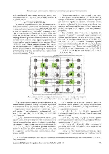 В данной работе используется понятие типологизации как метода познания, выявления естественного расслоения синоптических объектов на выраженные «сгустки» (кластеры), лежащие друг от друга на некотором расстоянии в анализируемом многомерном пространстве признаков [7]. Прикладная цель типологизации – выявление и описание расслоенной природы анализируемой совокупности объектов. Типологизацию следует отличать, во-первых, от классификации – процесса разделения совокупности объектов (явлений) на однородные в определенном смысле группы (известные, принятые); во-вторых, – от понятия типизации – выявления типовых форм атмосферных процессов с использованием устойчивых характеристик атмосферной циркуляции, типичных, общих для многих объектов свойств, и обоснованного сведения многообразия избранных типов к небольшому числу [2].