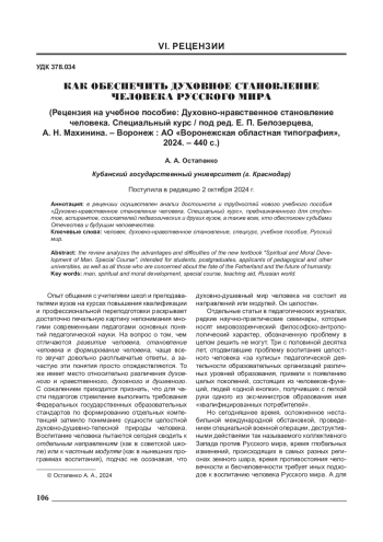 2. Духовно-нравственное становление человека. Специальный курс. Учебное пособие / под ред. Е. П. Белозерцева, А. Н. Махинина. - Воронеж: АО “Воронежская областная типография”, 2024. -440 с.