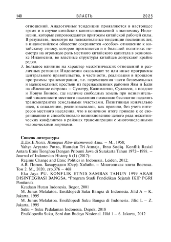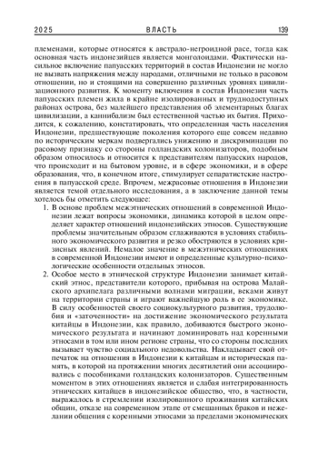 ПОПОВ А. В. МЕЖЭТНИЧЕСКИЕ ОТНОШЕНИЯ В СОВРЕМЕННОЙ ИНДОНЕЗИИ // ВЛАСТЬ. 2025. ТОМ 33 № S1