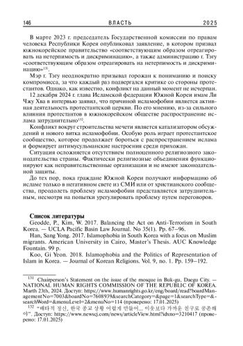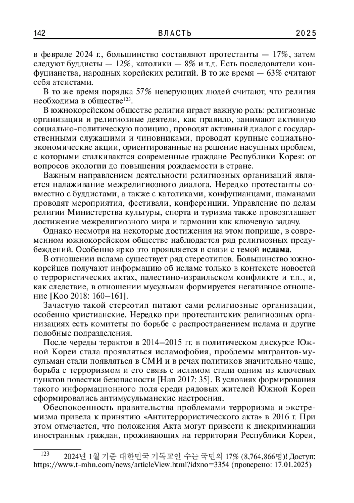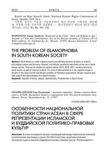 ШУПЛЕЦОВА К. В. ПРОБЛЕМА ИСЛАМОФОБИИ В ЮЖНОКОРЕЙСКОМ ОБЩЕСТВЕ // ВЛАСТЬ. 2025. ТОМ 33 № S1